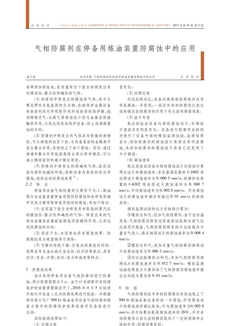 《停備用設(shè)備氣相防腐劑在停備用煉油裝置防腐蝕中的應(yīng)用》文章正式出版