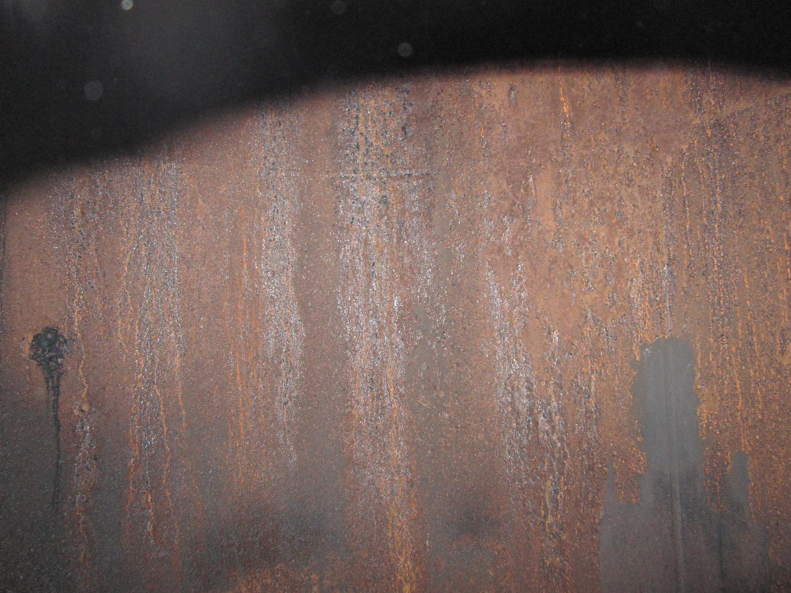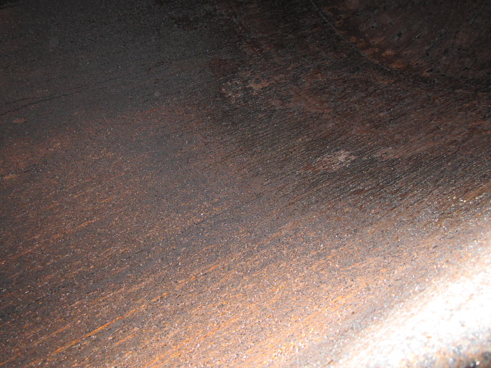 2011年10月19號(hào)打開(kāi)了T-201、T-202、T-301、T-302、T-303的人孔,經(jīng)過(guò)實(shí)地勘察和拍照取證我們發(fā)現(xiàn)設(shè)備的腐蝕情況較為嚴(yán)重。T-301、T-302、T-303整體腐蝕都非常嚴(yán)重,內(nèi)表層全部覆蓋滿銹跡,有些地方鐵銹層能達(dá)到2毫米左右。T-201塔底腐蝕不是很厲害銹跡較少,中部開(kāi)始腐蝕銹跡慢慢變多,越往塔上部腐蝕越嚴(yán)重鐵銹層也越厚,最厚處銹層也能達(dá)到2毫米左右。T-202腐蝕也很?chē)?yán)重能看見(jiàn)大片的銹跡不過(guò)銹層不是很厚。